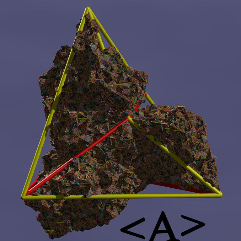These images correspond to a level-7 non-selfsimilar deflation of the 4 Danzer octahedra.